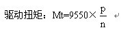 式中:Mt為驅動扭矩,P為驅動功率,n為轉速。